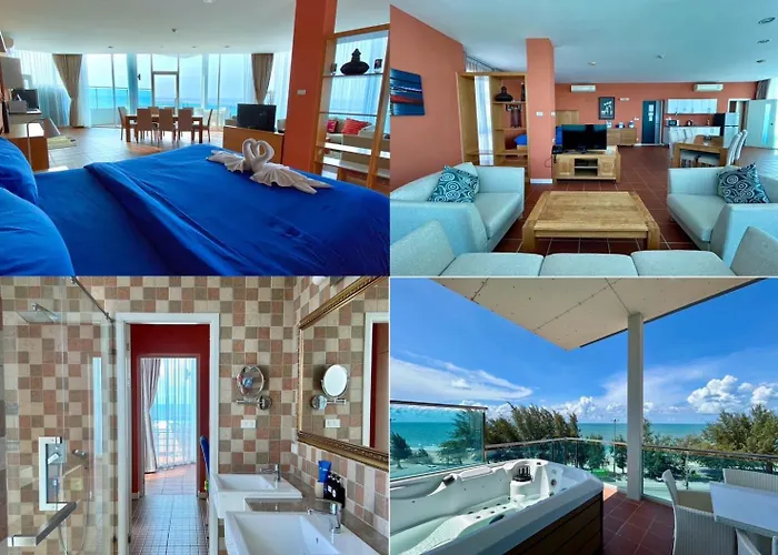 Grandblue Resort & Beachclub i Mae Phim har 56 rum med uteplats och balkong. Här erbjuds plattskärms-TV med satellitkanaler samt te-/kaffebryggare. De är möblerade med skrivbord. Dessutom finns det ljudisolerade fönster. Badrummen har en regndusch och en bastu samt hårtorkar och handdukar. Gästerna kan också njuta av utsikten över bassängen.